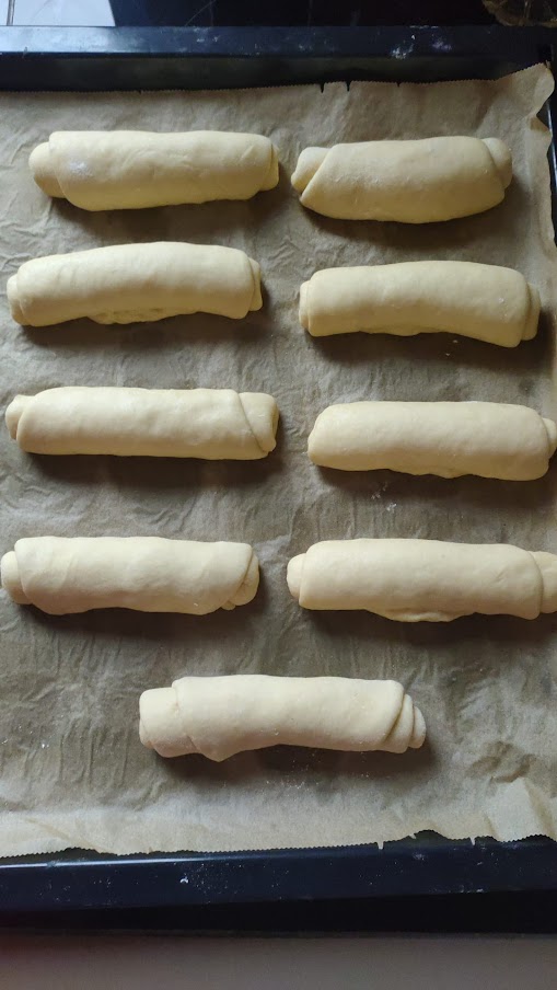 >>26750 >You baked them yourself? Yes, i have baked this recipe several times. Milk Rolls Dissolve the yeast in the warm milk and mix in the egg. Mix all dry ingredients together than add butter and the yeast-egg-milk mix. Knead well for at least 5 minutes. Cover and let the dough double in size. Divide into 8,9 or 12 pieces and shape into balls. After a short rest, roll the balls out very thinly and roll them up again. Pinch the ends together and place the roll on a baking tray with the pinched side facing down. Then let rest for 20-30 minutes. Bake at 170°C (340°F) for 25-30 minutes. Ingredients: 500g flour (all-purpose flour, 405 - 812) 300g warm milk 60g soft butter 1 egg 40g sugar 5g salt 1 packet of active dry yeast or 1/2 cube of fresh yeast A little butter for greasing after baking.